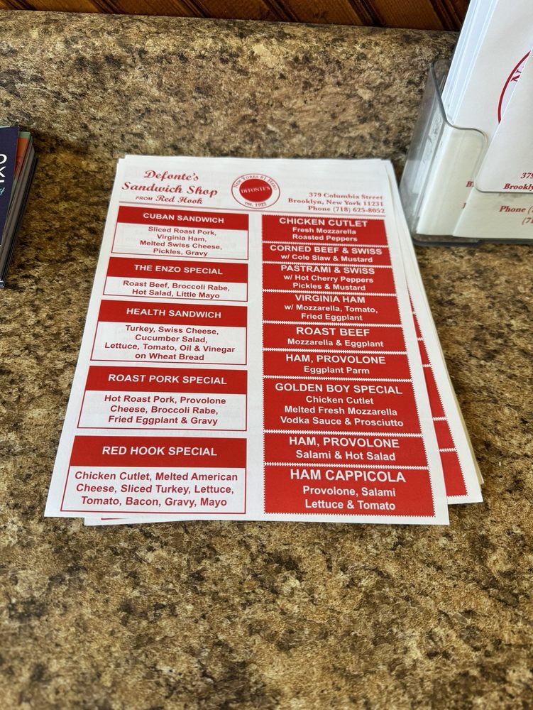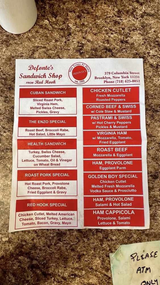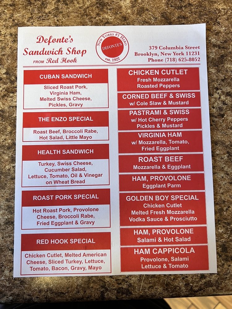 Defonte's, located in Brooklyn, NY, is a beloved sandwich shop with a rich history spanning over 100 years. Their menu boasts a variety of mouthwatering hot and cold hero options, such as the iconic Meatball Marinara, Italian Stallion, and Hot Roast Beef. Customers rave about the fresh ingredients, generous portions, and unique flavors of the sandwiches. The nostalgic atmosphere and friendly service add to the overall dining experience. Defonte's is known for its traditional yet innovative approach to sandwich-making, making it a must-visit destination for sandwich enthusiasts. Whether you're in the mood for a classic meatball sub or craving a specialty hero like the Golden Boy, Defonte's is sure to leave you satisfied and coming back for more.